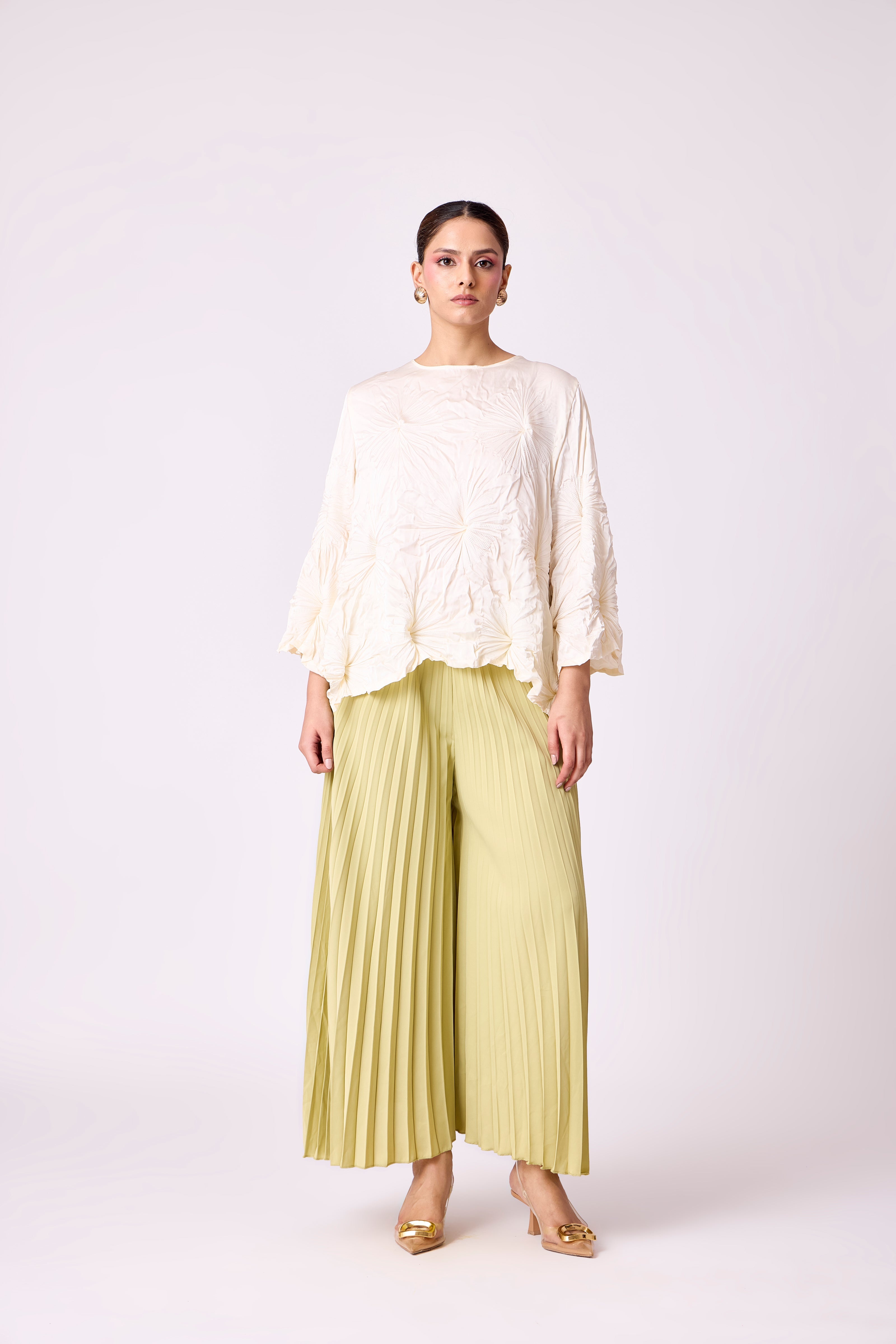 Accordion pleated pants in a luxury polished fabric. SIZE  FREE SIZE ( ONE SIZE FITS ALL )...