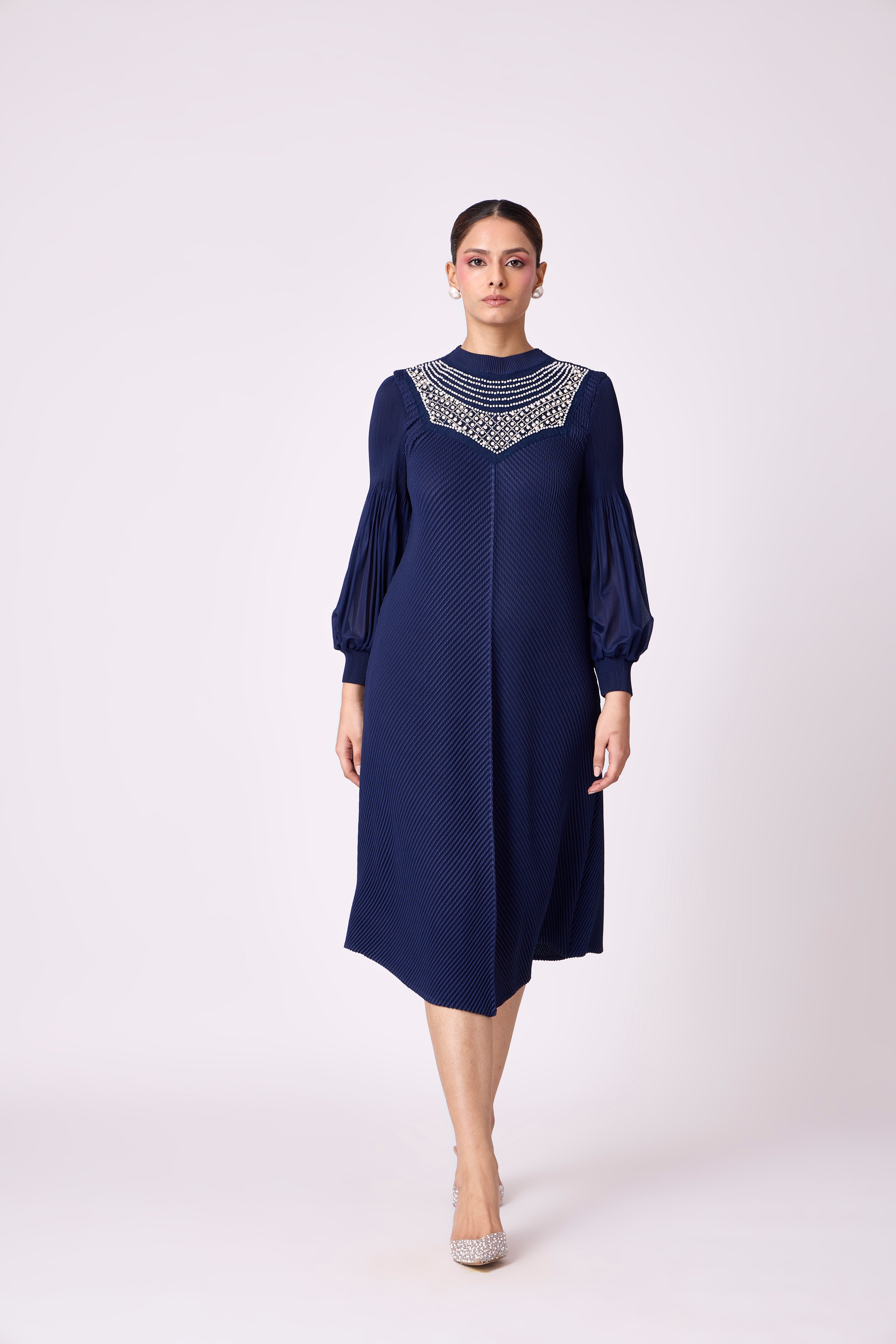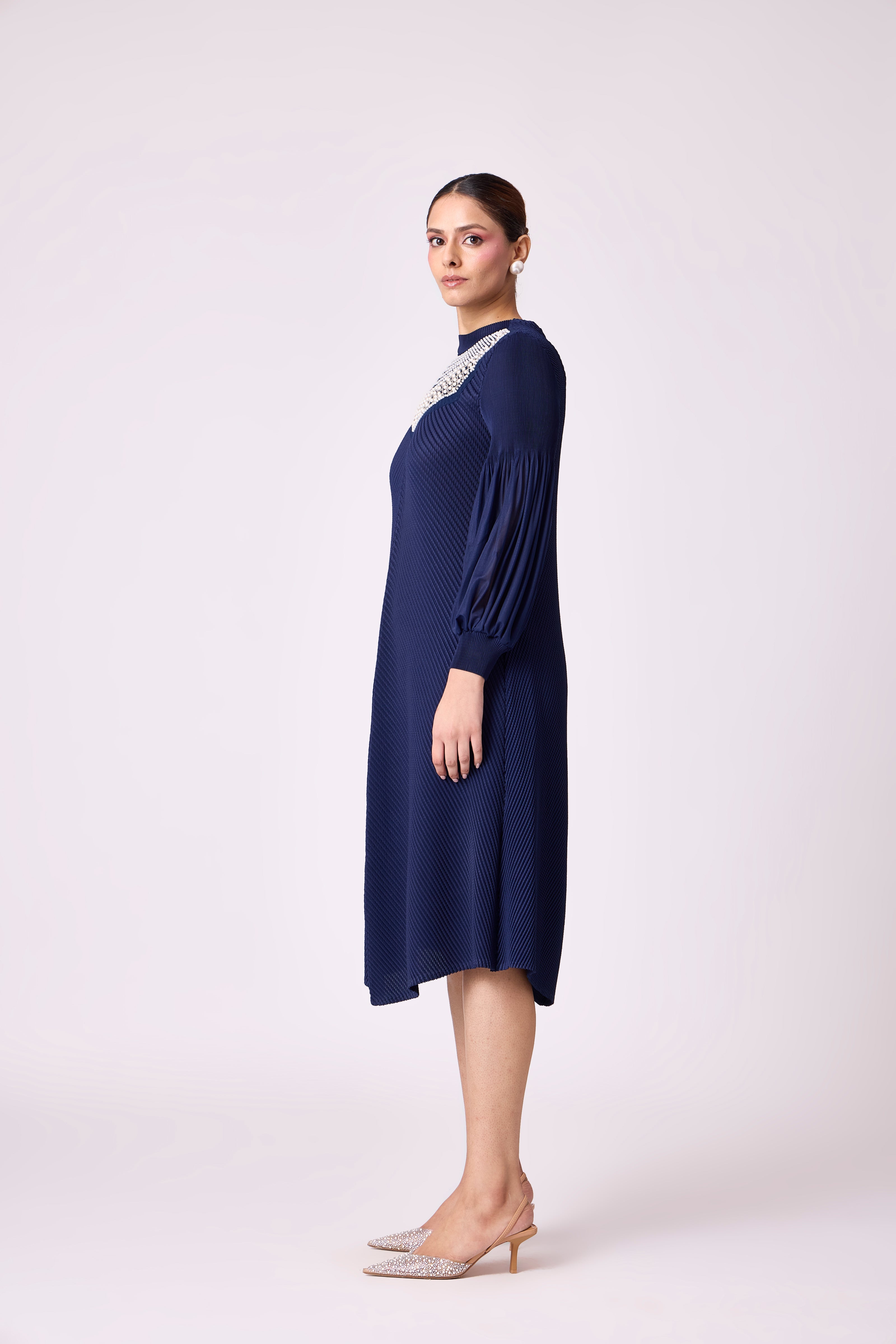 An elegant A line dress with a statement embellished yoke and softly gathered sleeves . SIZE  FREE...