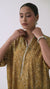 Marissa Set - Pale AmberComfort fit shirt tunic with front zipper closure paired with narrow leg pants. Fabric is a soft muslin blend printed all over with metallic silver foil speckles. The model is 5.9 ft. Need help with sizing and color customization? WhatsApp us on +917777025954 SIZE...