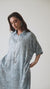 Marissa Set - Powder BlueComfort fit shirt tunic with front zipper closure paired with narrow leg pants. Fabric is a solf muslin blend printed all over with metallic silver foil speckles. The model is 5.7 ft. Need help with sizing and color customization? WhatsApp us on +917777025954 SIZE...