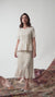 Valerie Satin Overlay Set - CreamAn overlay paired with straight leg, wide pants, rendered in uniquely pleated, metallic textured fabric. Style the set with a satin camisole, shirt or a fitted blouse to breeze through evenings. It is a two-piece set. The camisole shown in the images is used...