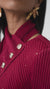 Celestine Satin Overlay Dress - Dark RedA high-neck pleated A line Satin dress with matching satin cardigan - featuring a unique hem finish on both the dress and sleeves for a charming feminine look. SIZE FREE SIZE ( ONE SIZE FITS ALL ) SIZE GUIDE Fits S to XL well....