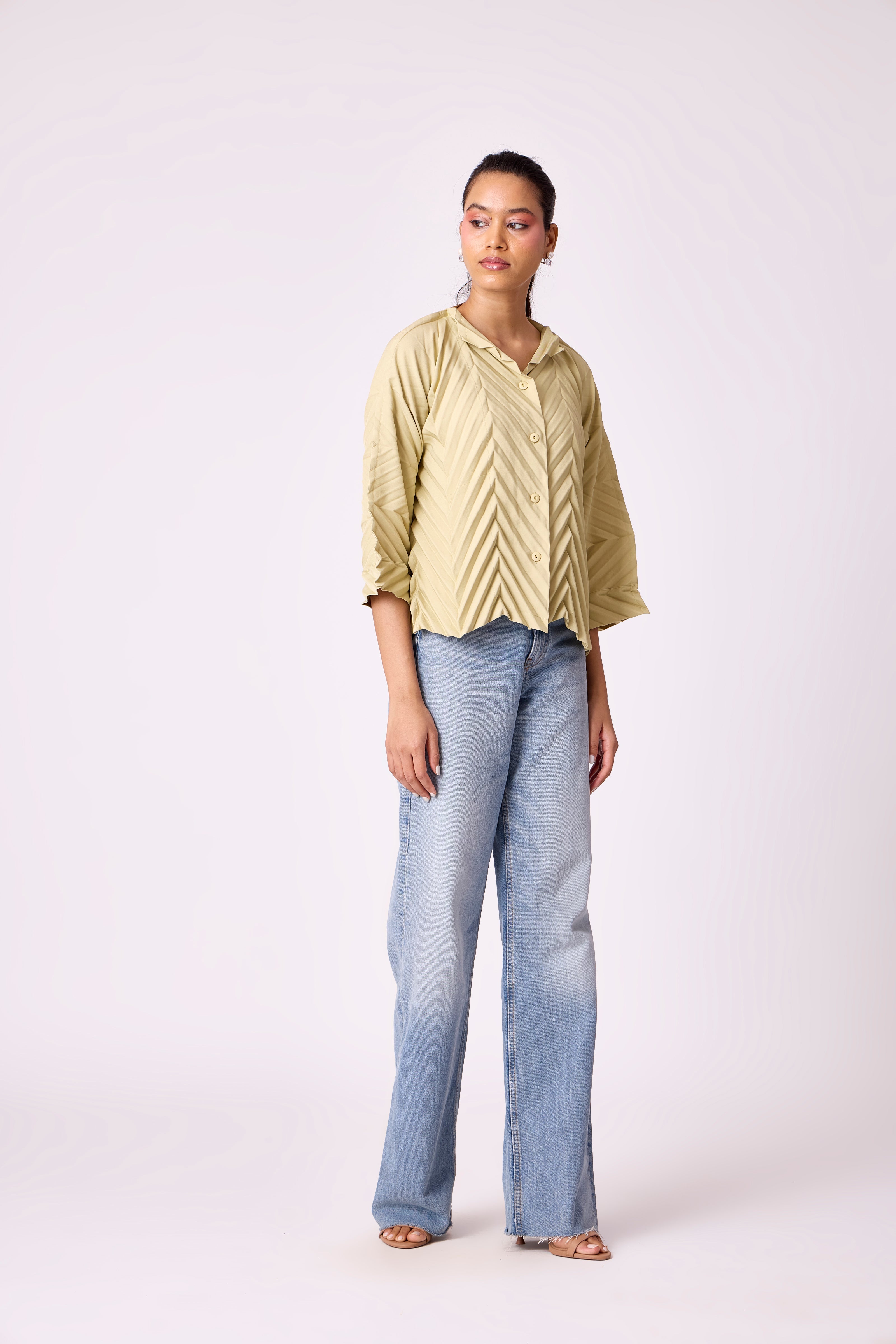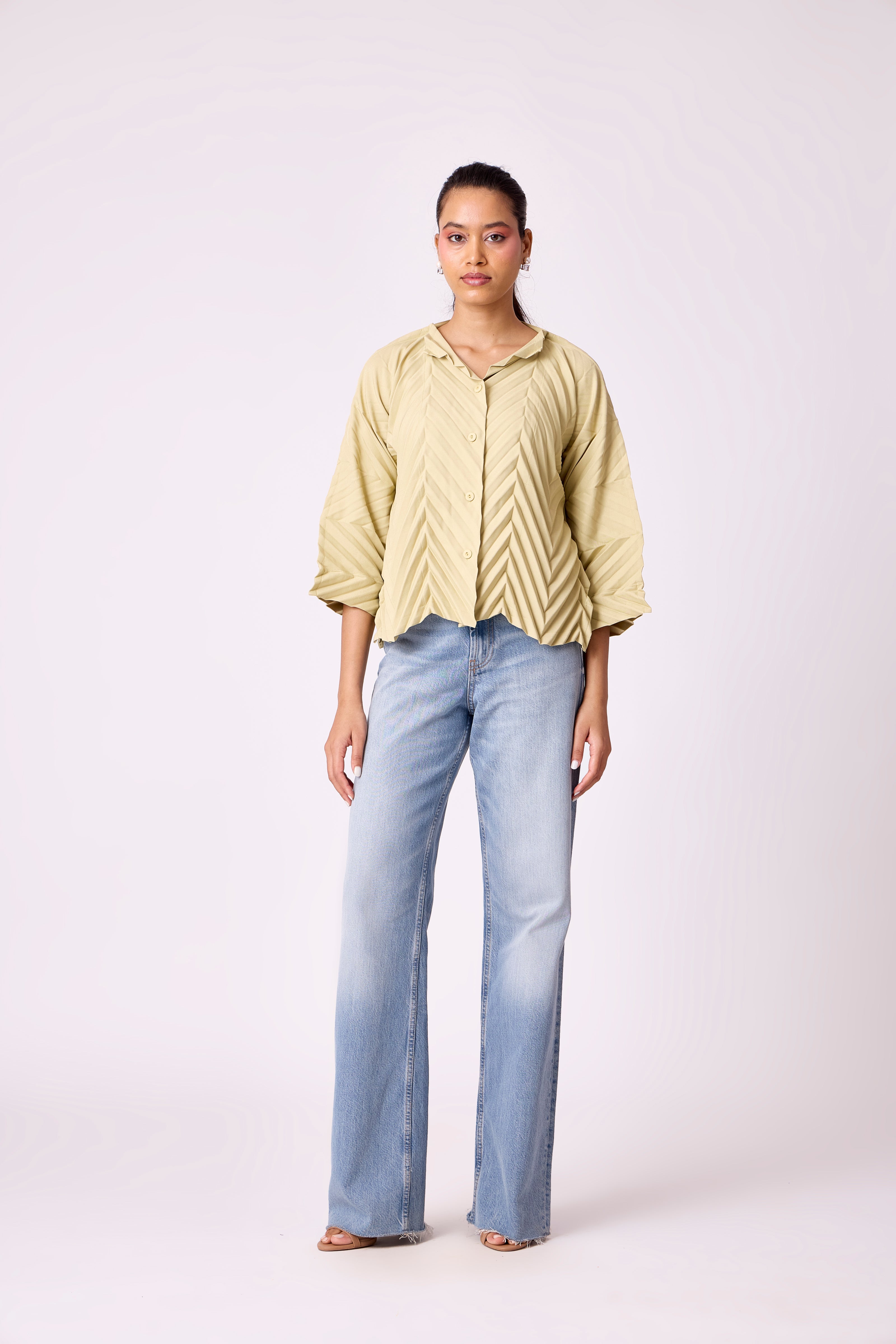 Classic chevron pleated shirt top. Pair with skirts , pants or denims for a complete look.