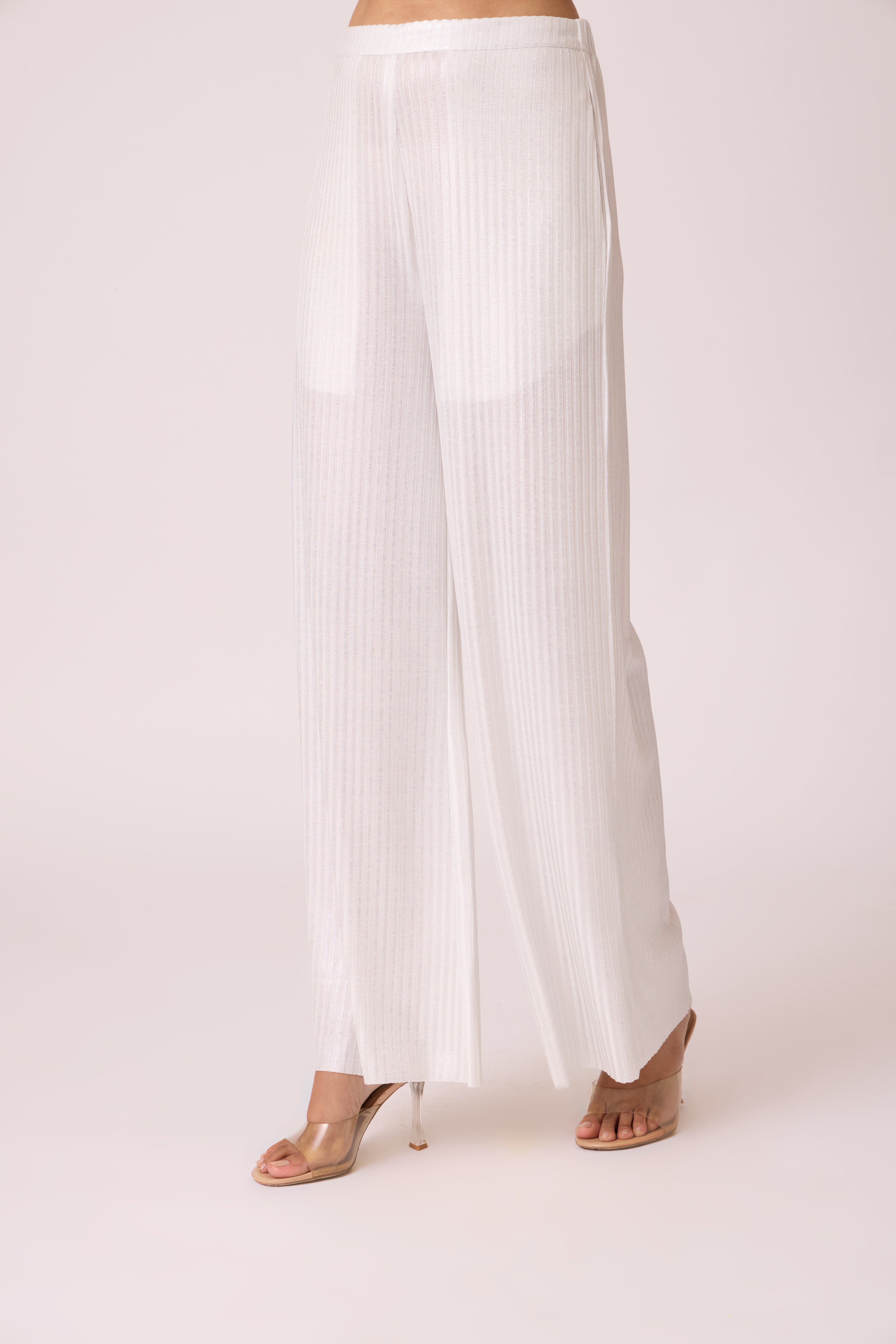 Wide leg pants, super comfortable and dressy, crafted from a soft metallic knit fabric.