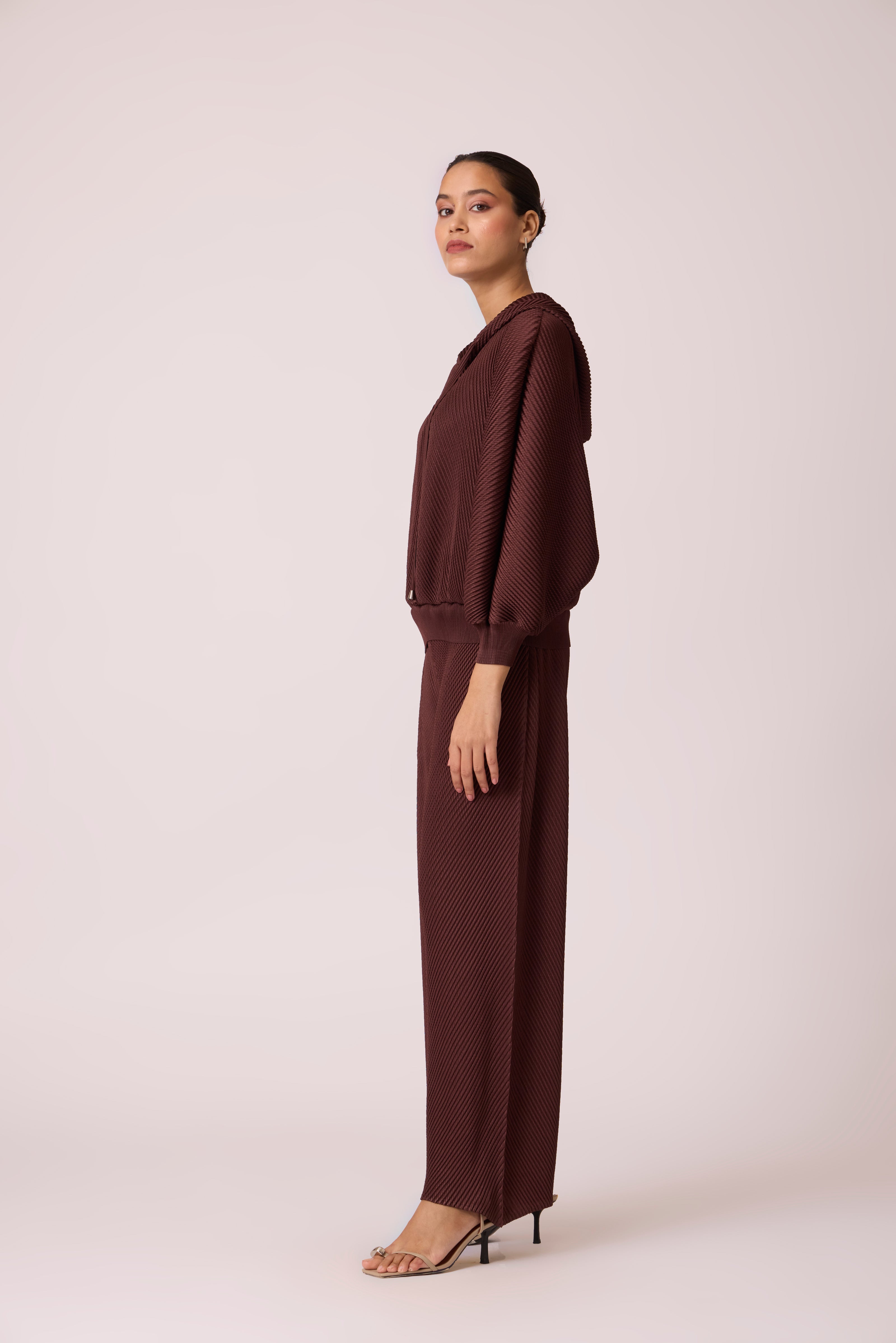 A luxe travel set crafted in gorgeous scale pleating on a lightweight wrinkle feel luxury fabric.