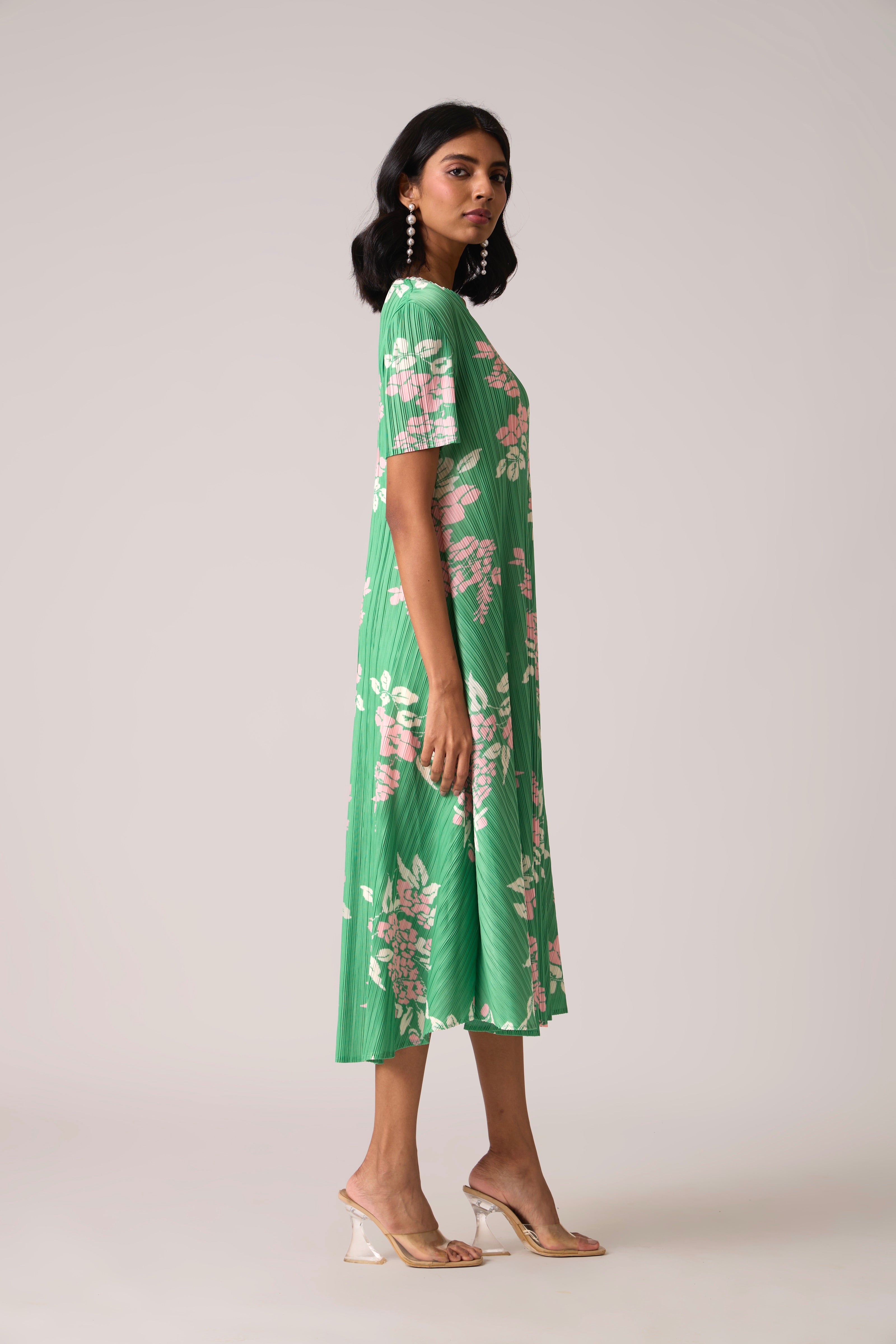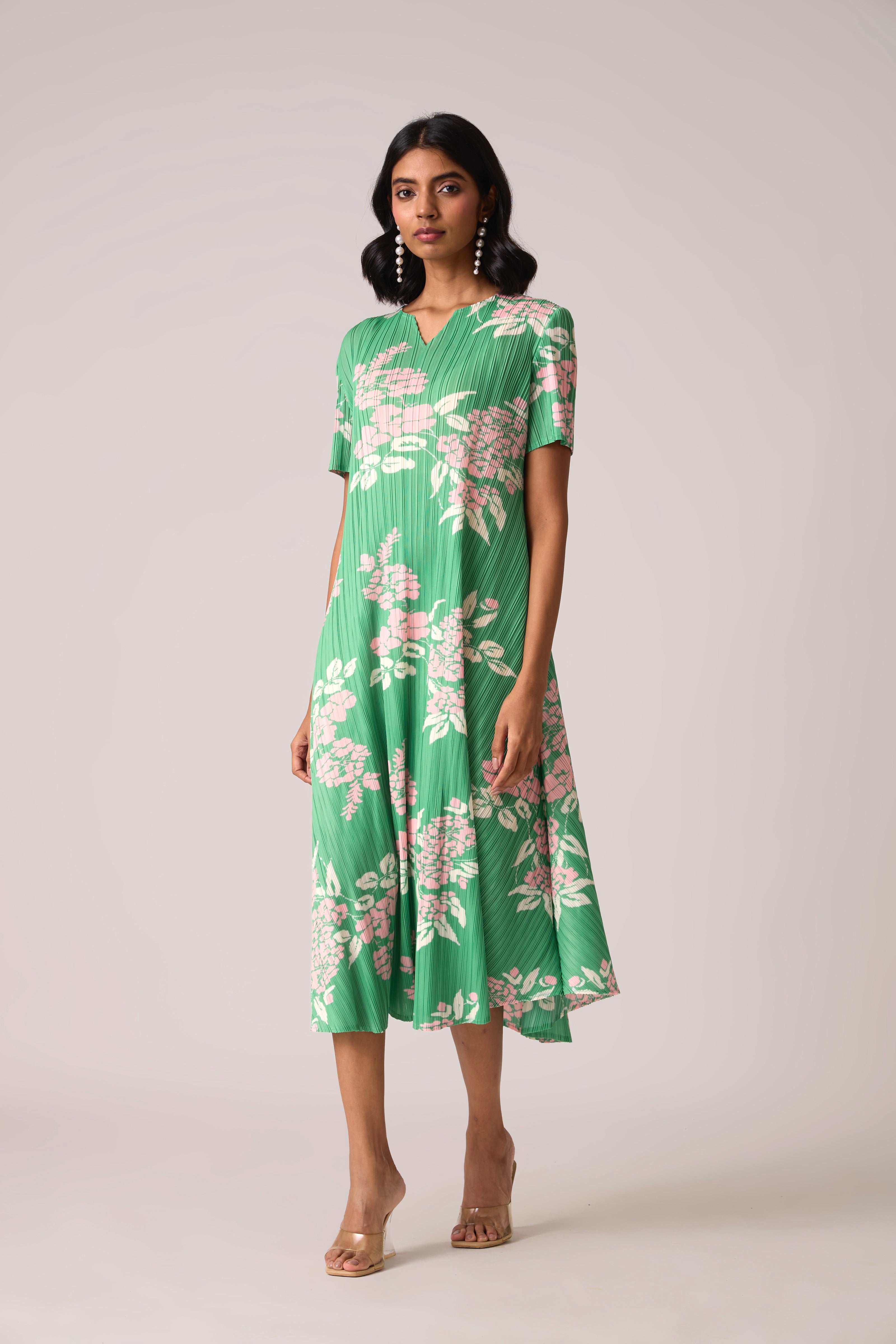 Classic summer A line pleated dress in a charming floral print.