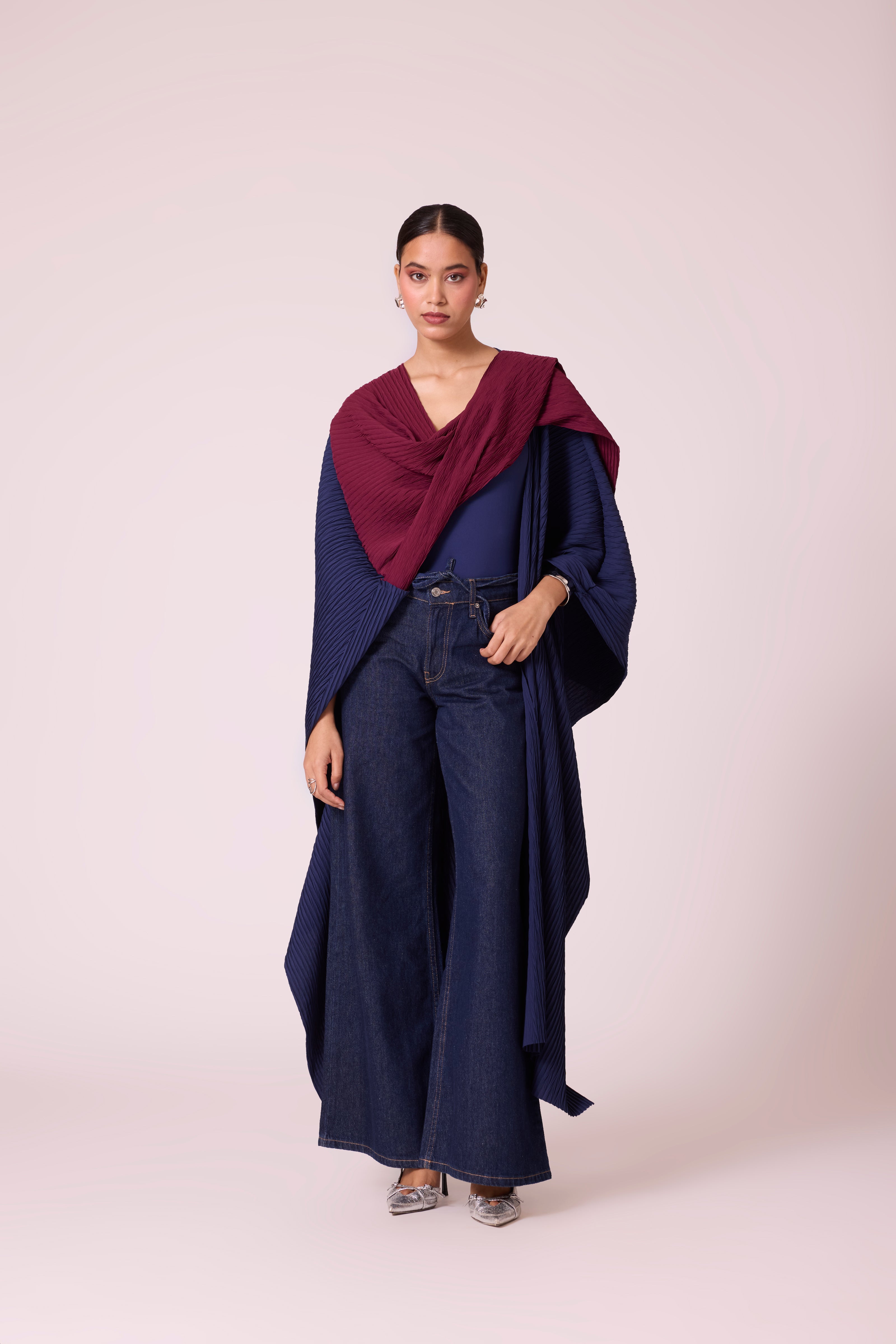 Long chevron pleated open sides overlay with matching slip and pant for a complete lounge set.