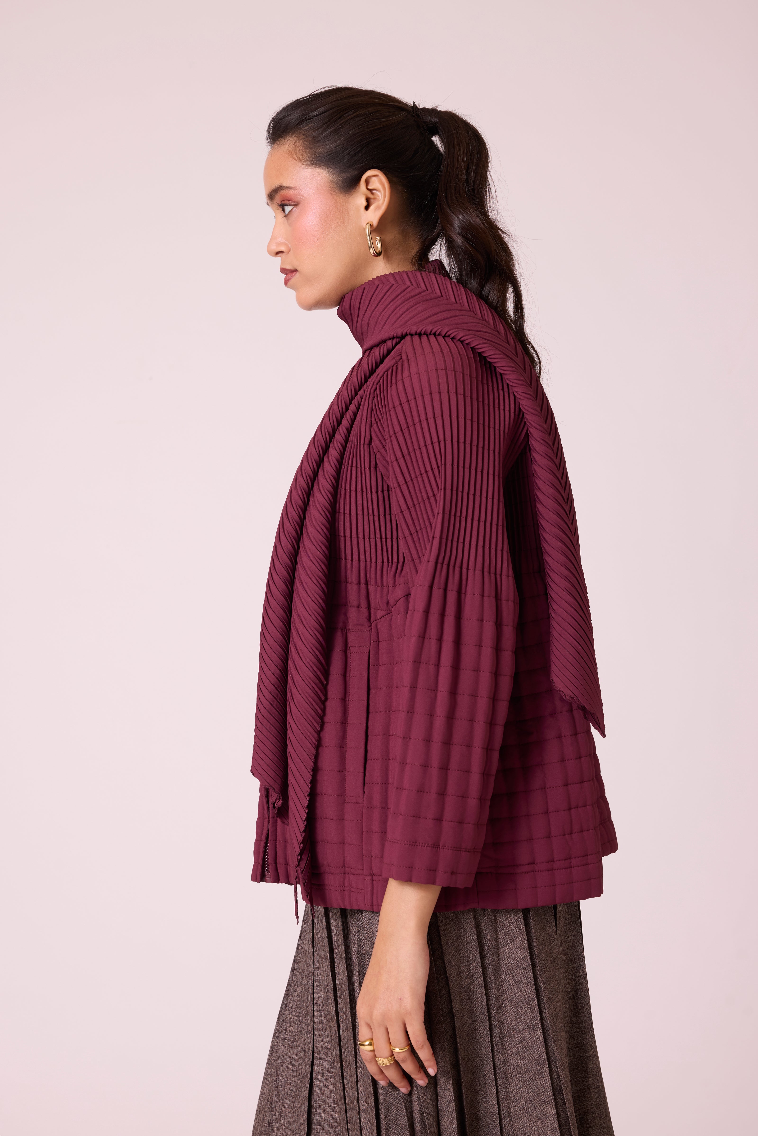 Splatter and tiny dots and print imprints on pleated garments are part of the pleating process, especially on light colors can not be avoided. These are not considered garment defects as due to nature of the pleating process, it is impossible to avoid mild anomalies.