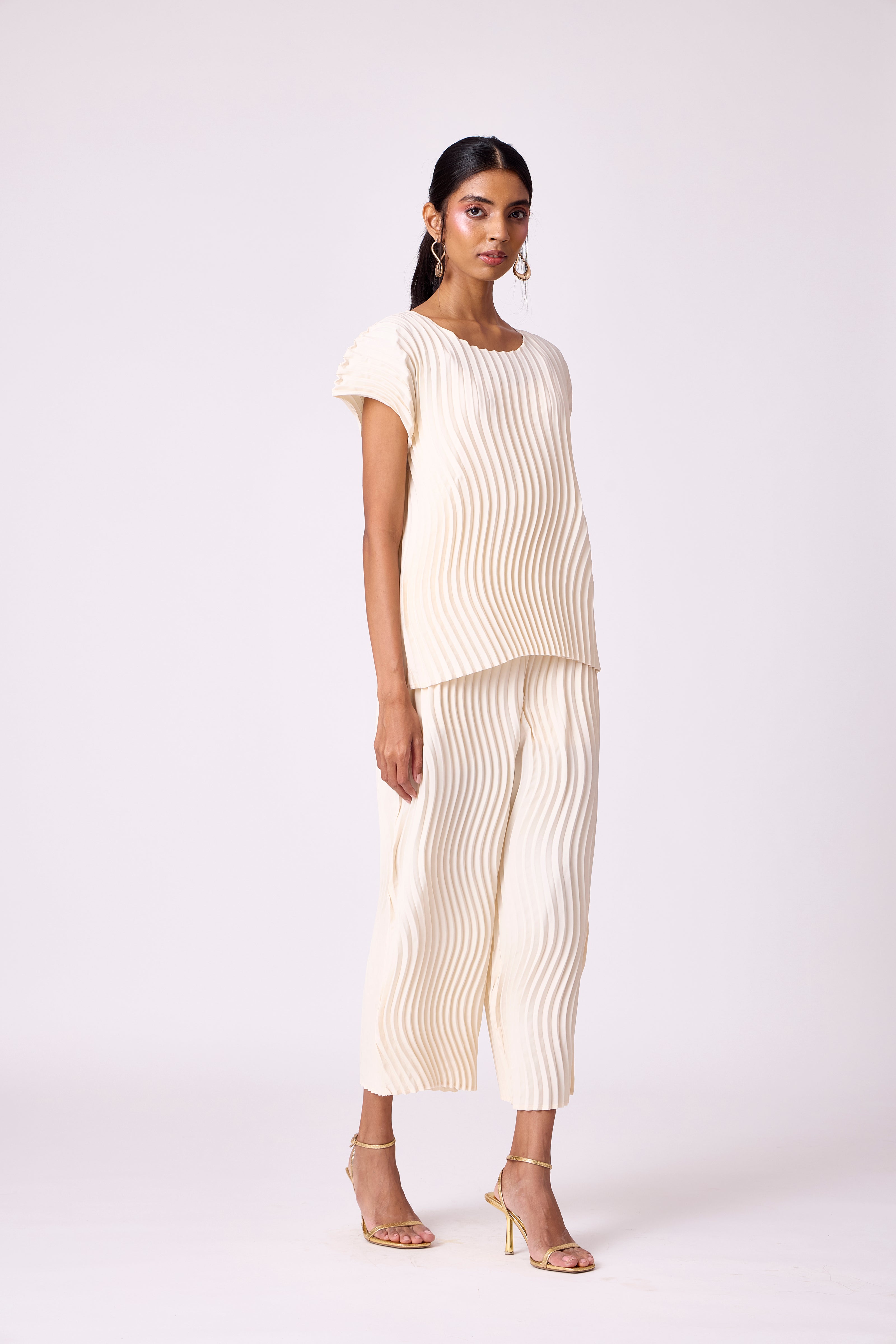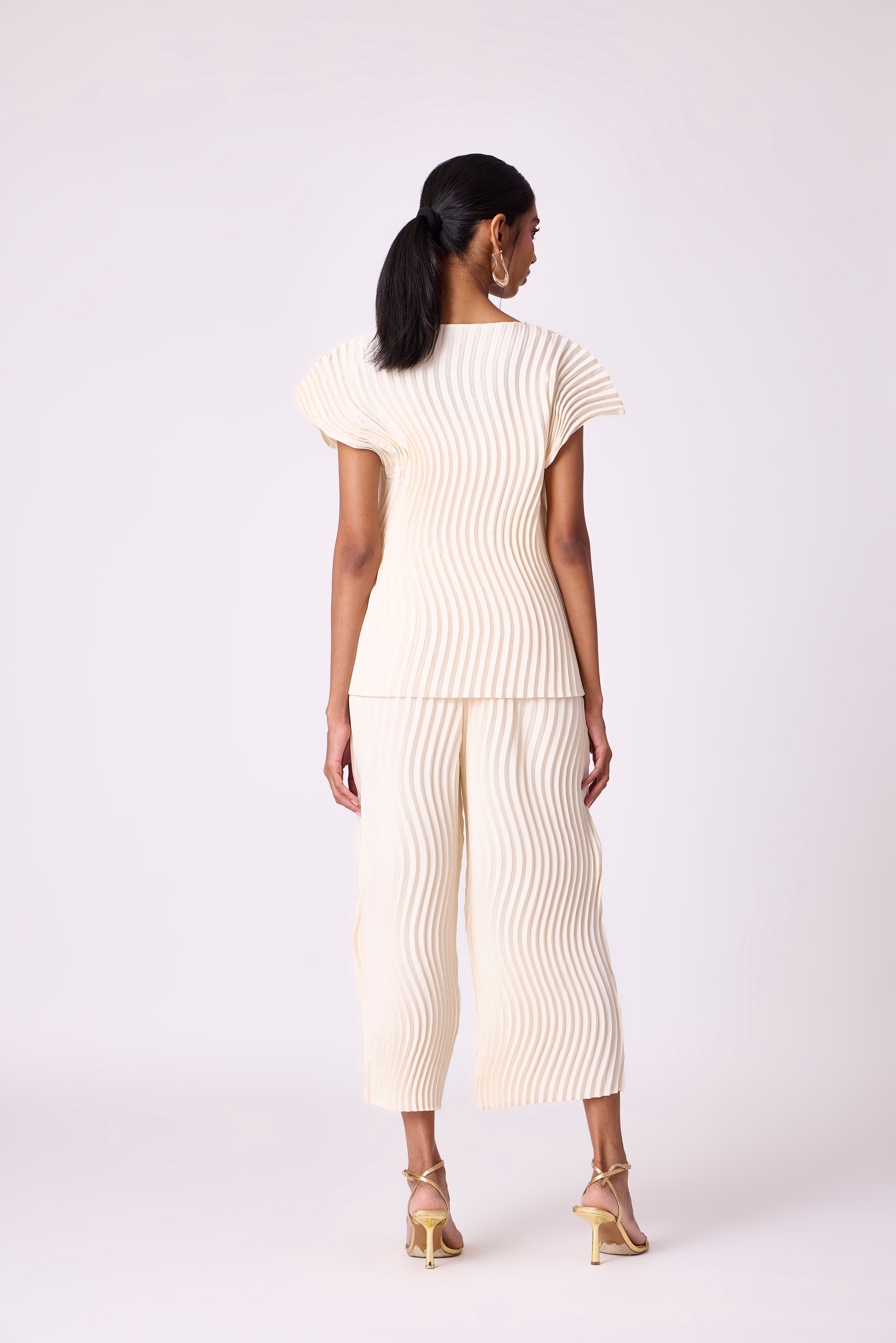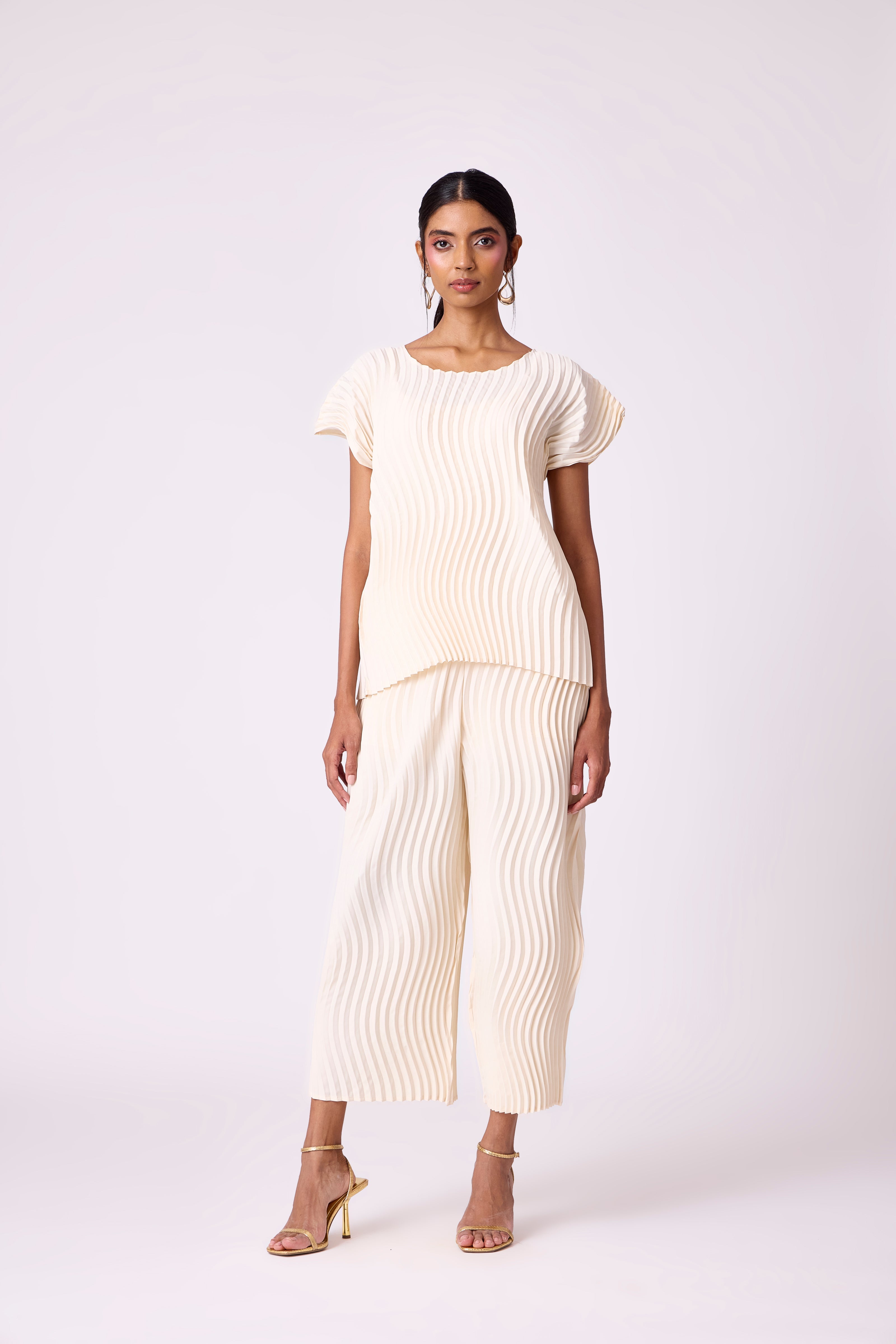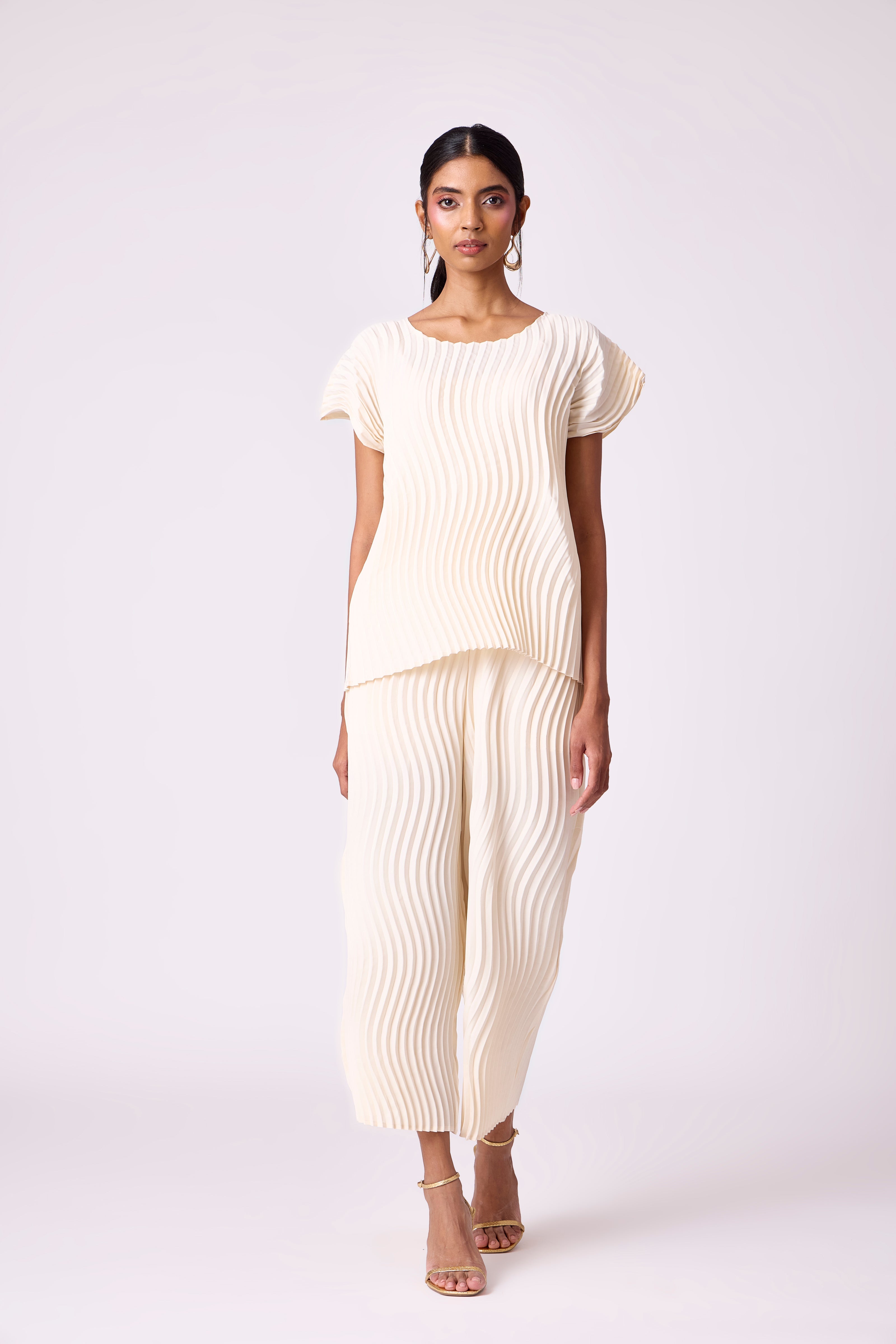 Wave pleated classic summer set in ivory.