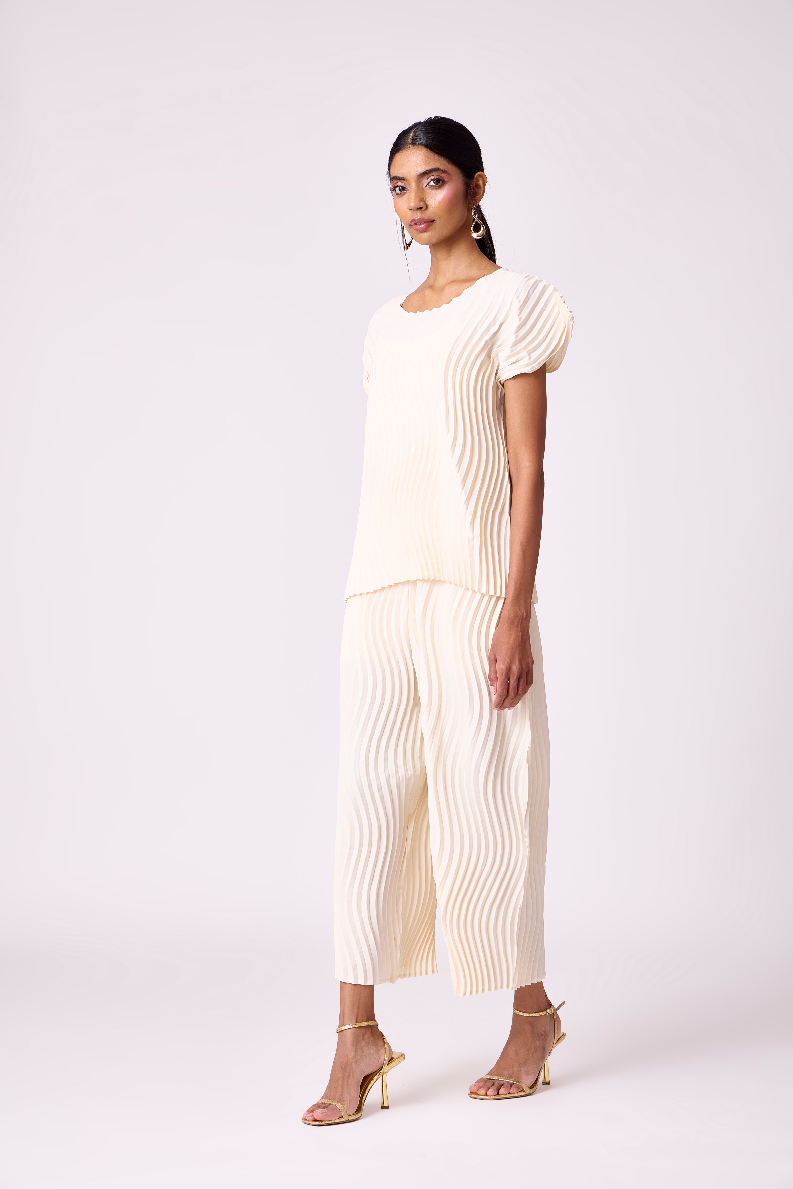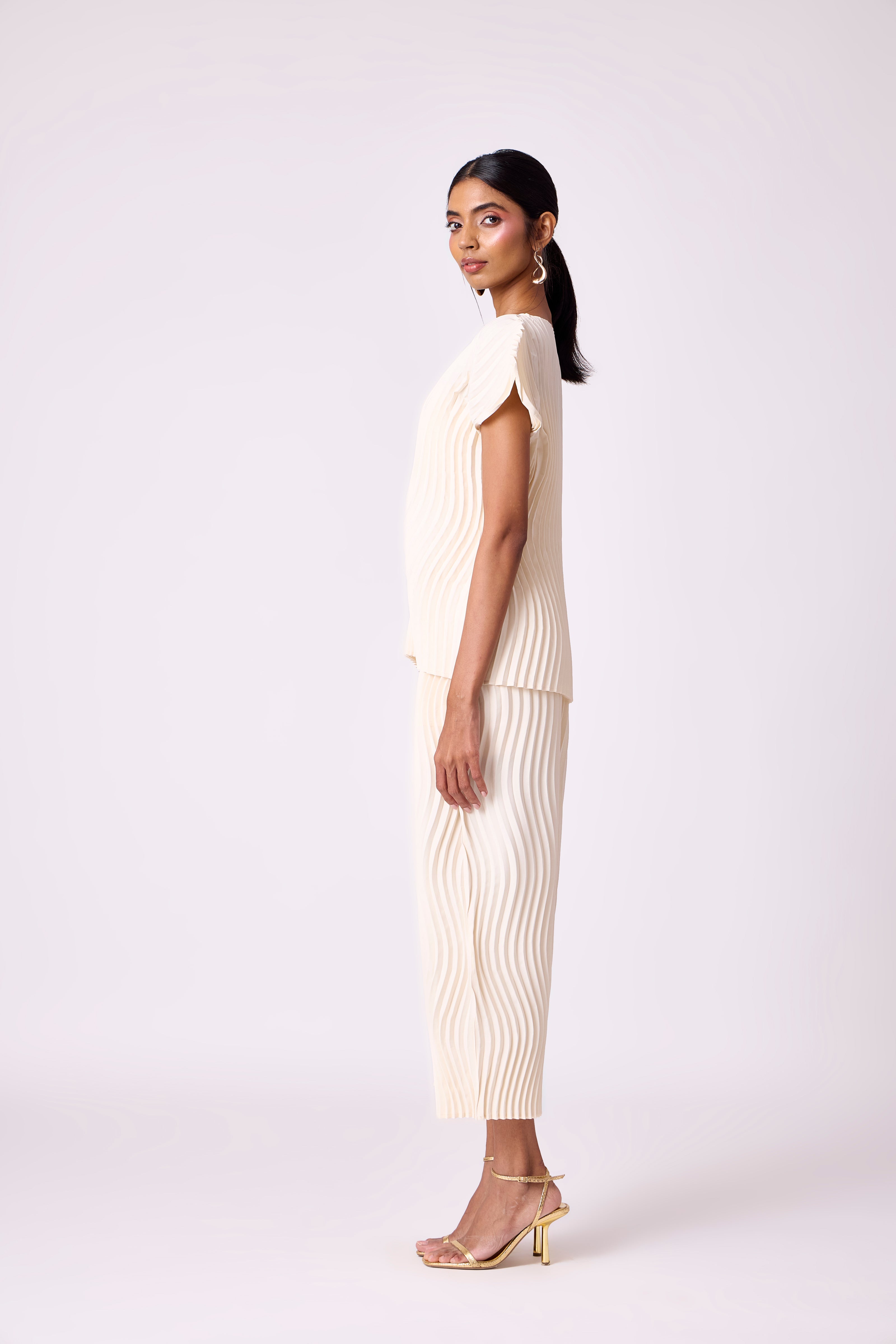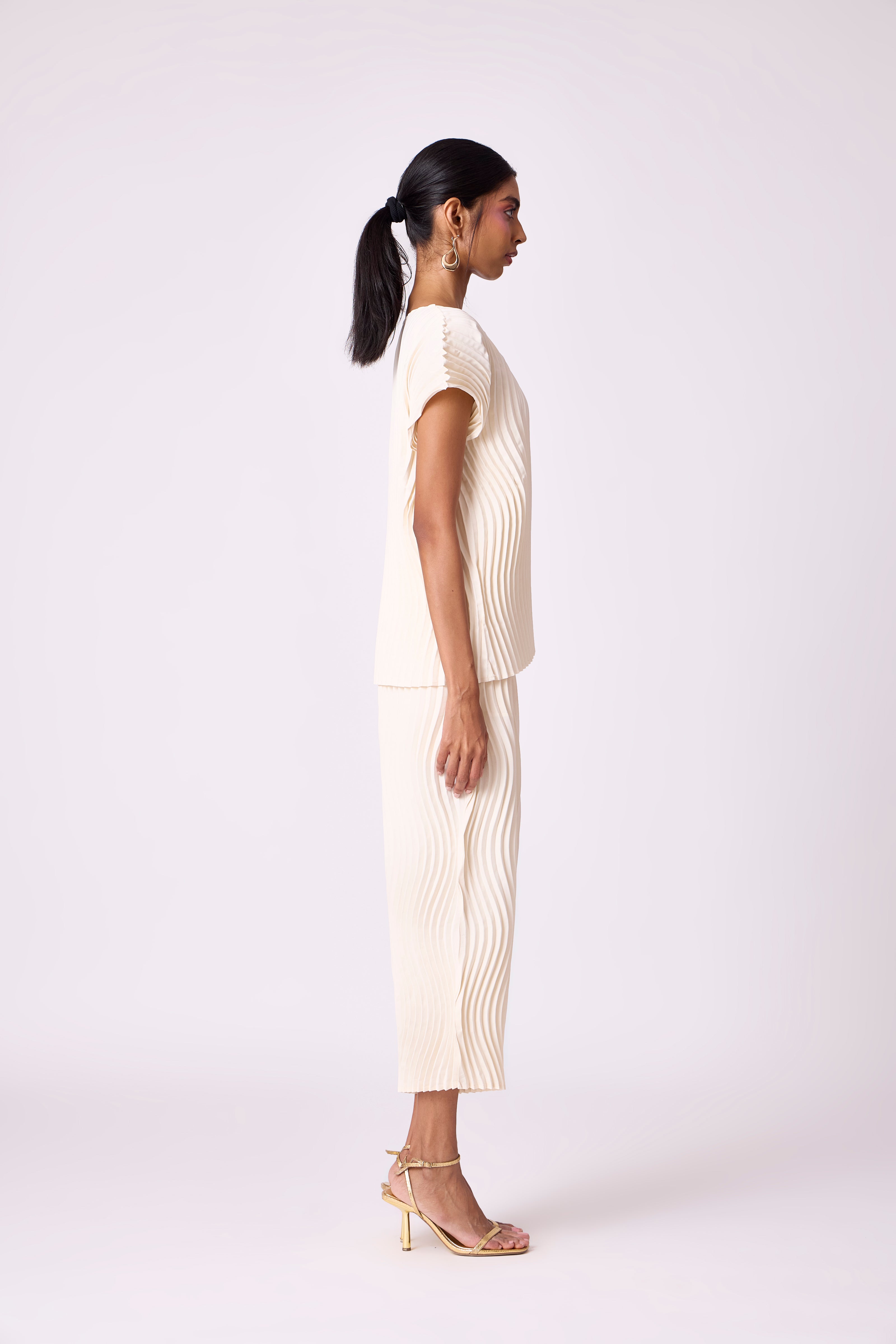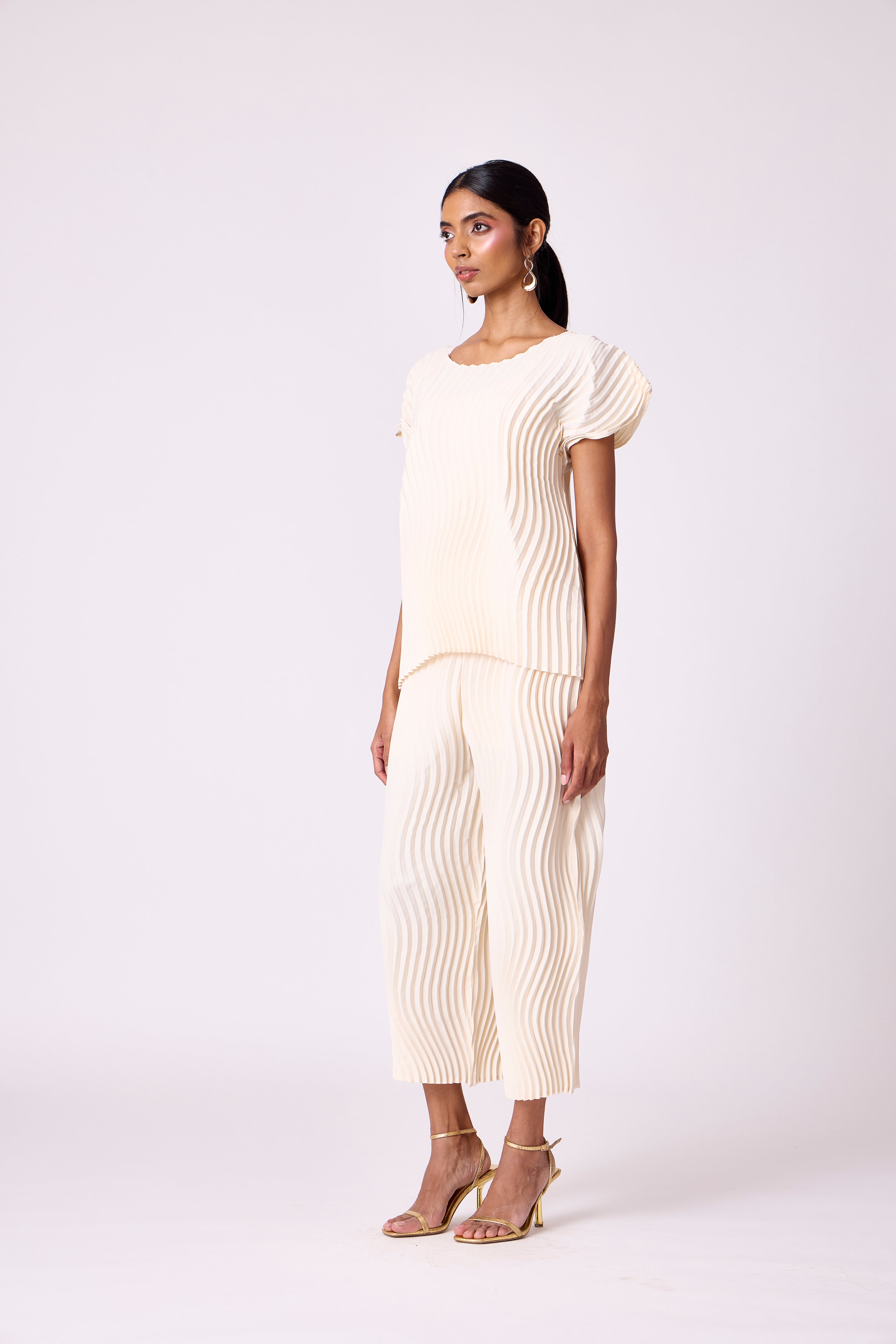 Wave pleated classic summer set in ivory.