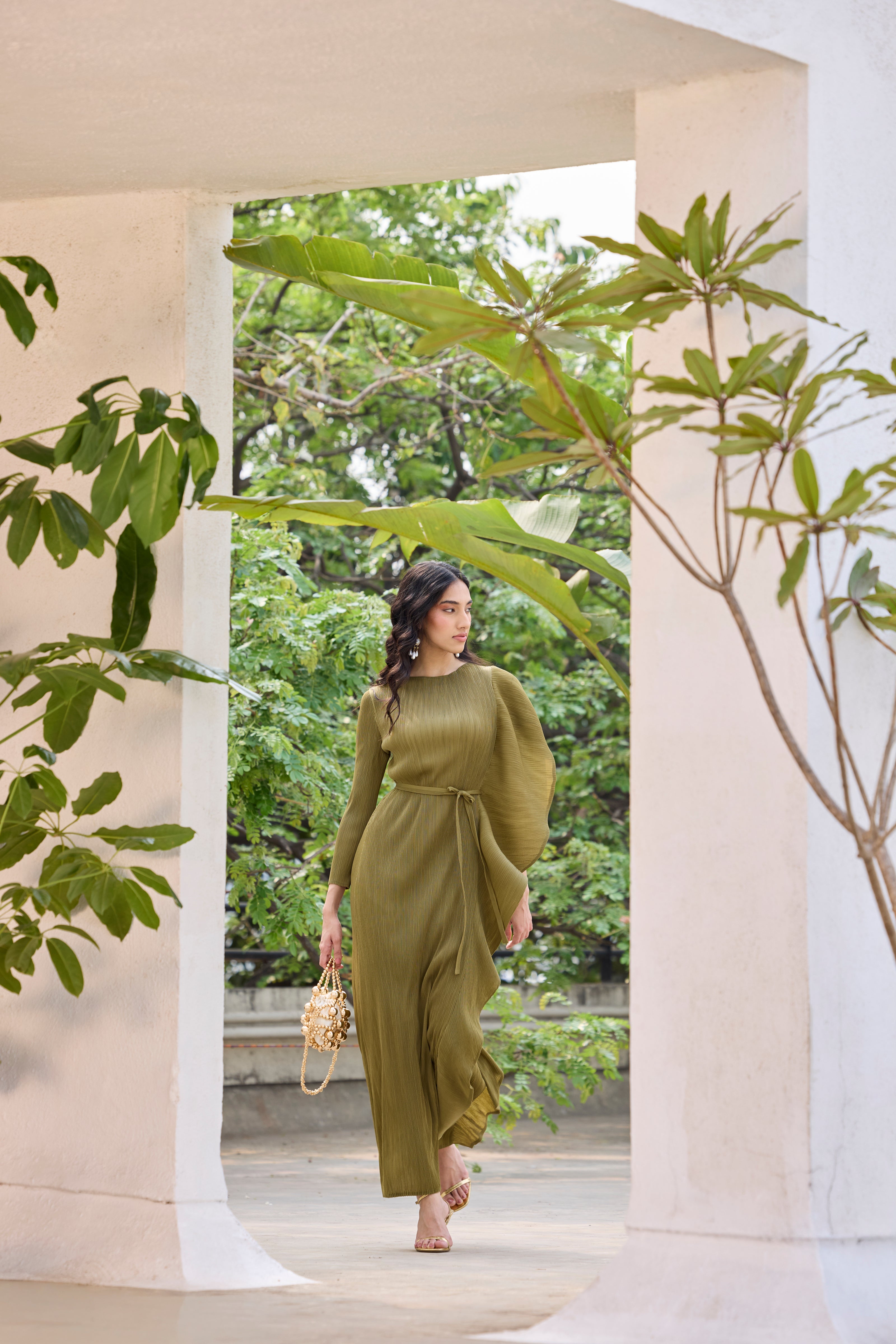 Pleated clothing expand to accommodate a variety of body sizes. Due to their texturing they do not cling or accentuate body parts.