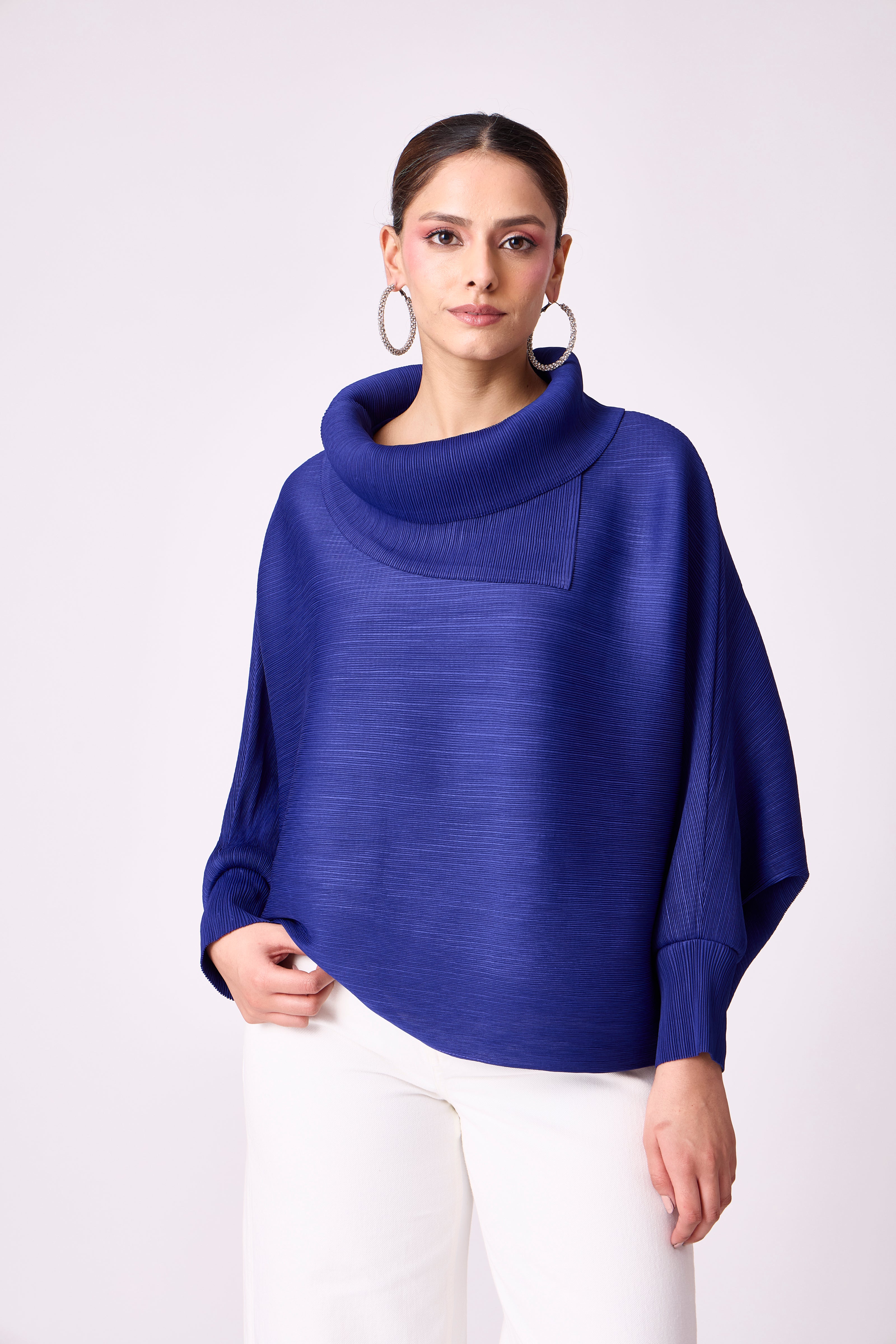 Our bestselling silhouette with batwing sleeves and turtleneck collar.