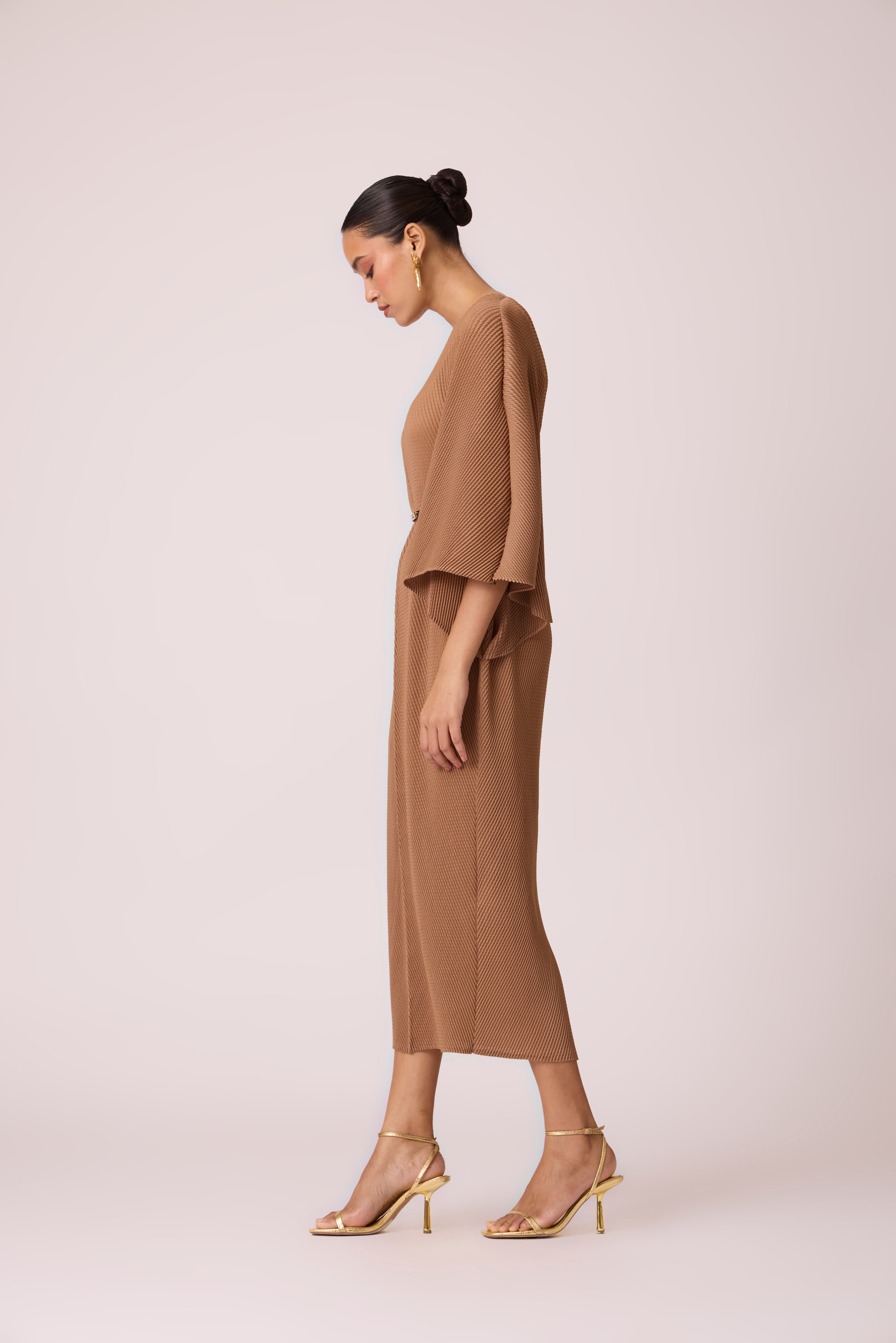 Splatter and tiny dots and print imprints on pleated garments are part of the pleating process, especially on light colours can not be avoided. These are not considered garment defects as due to nature of the pleating process, it is impossible to avoid mild anomalies.