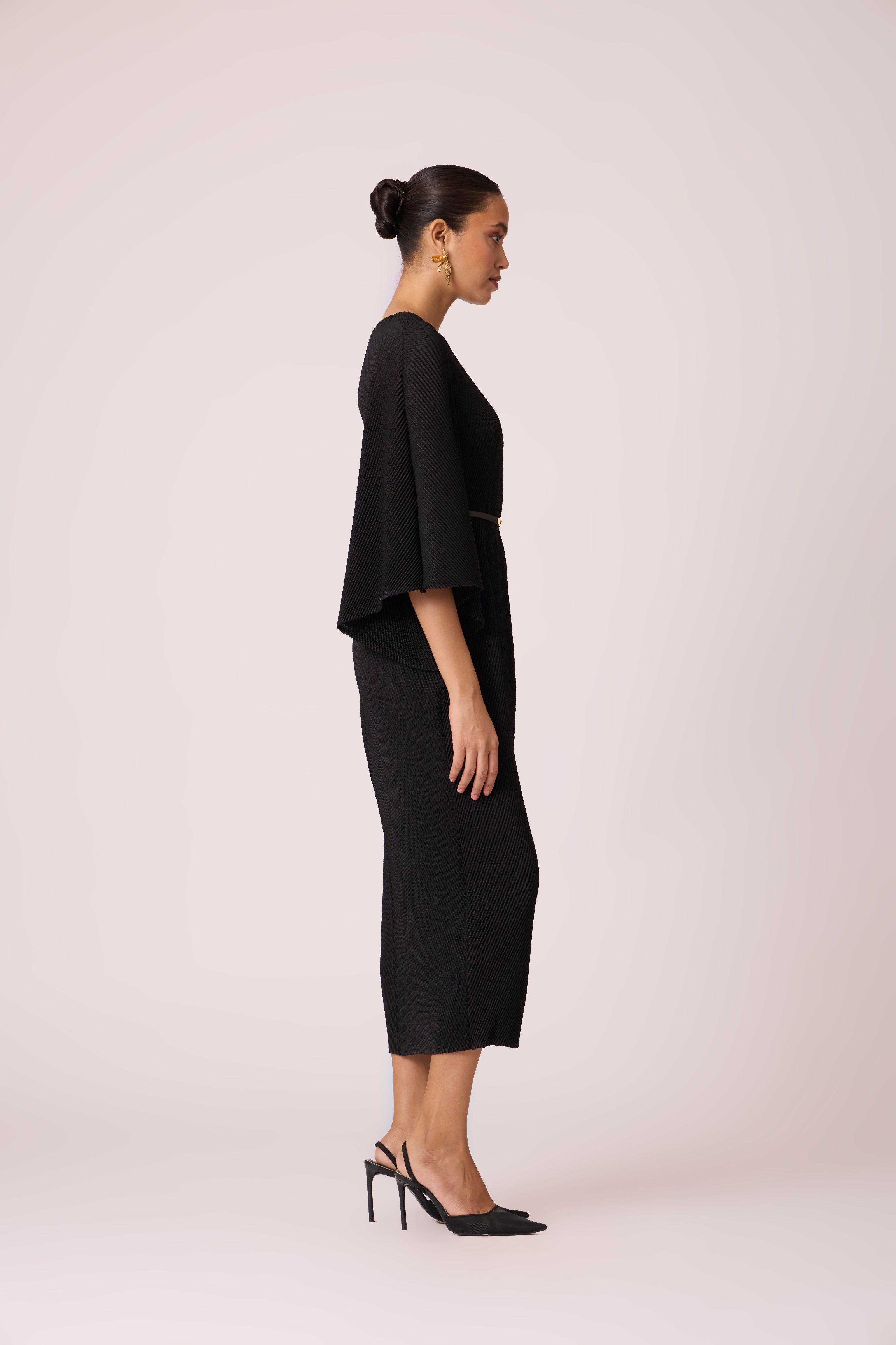 Kimono sleeved midi dress with a gently fitted silhouette. Comes with a slim belt to cinch the waist