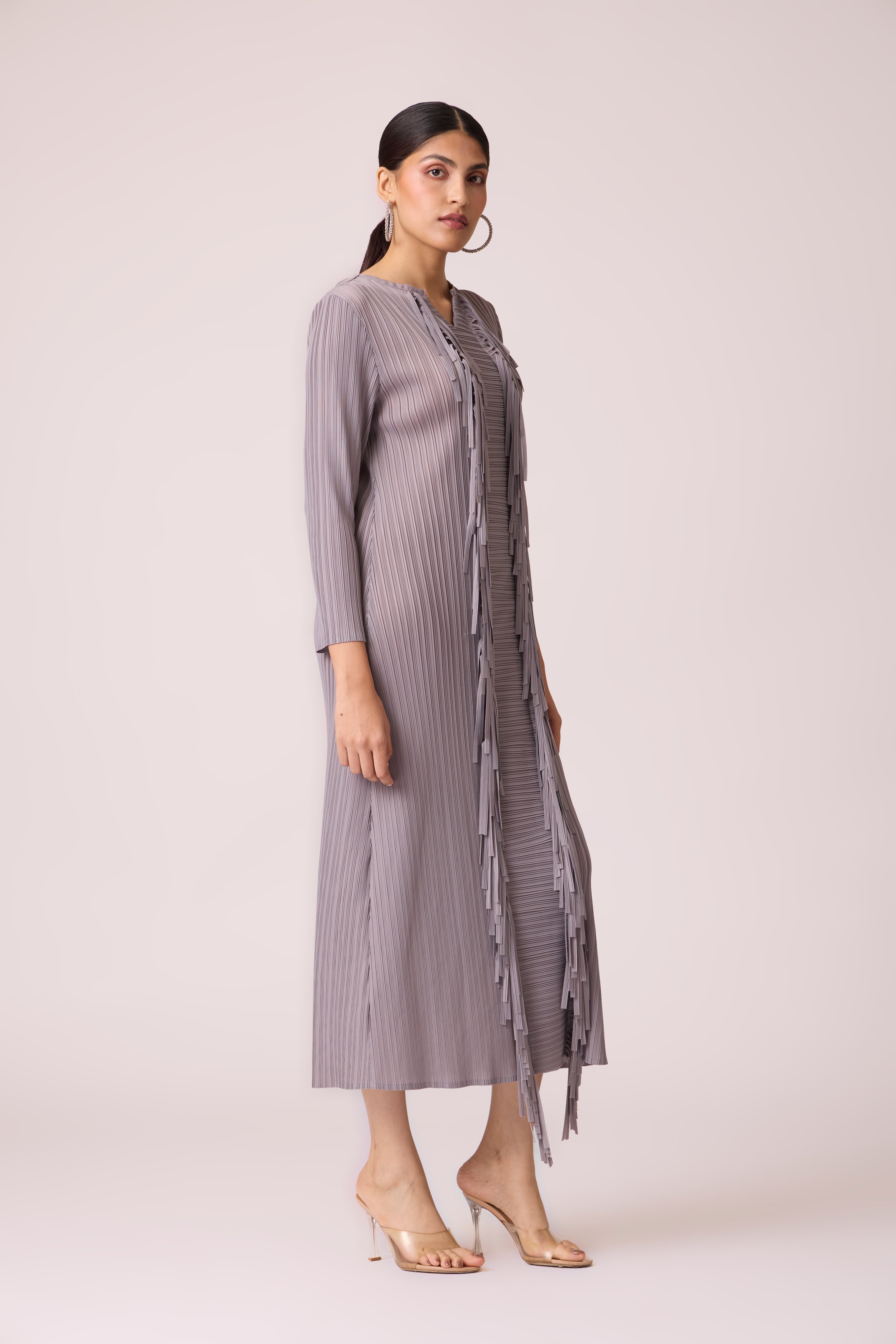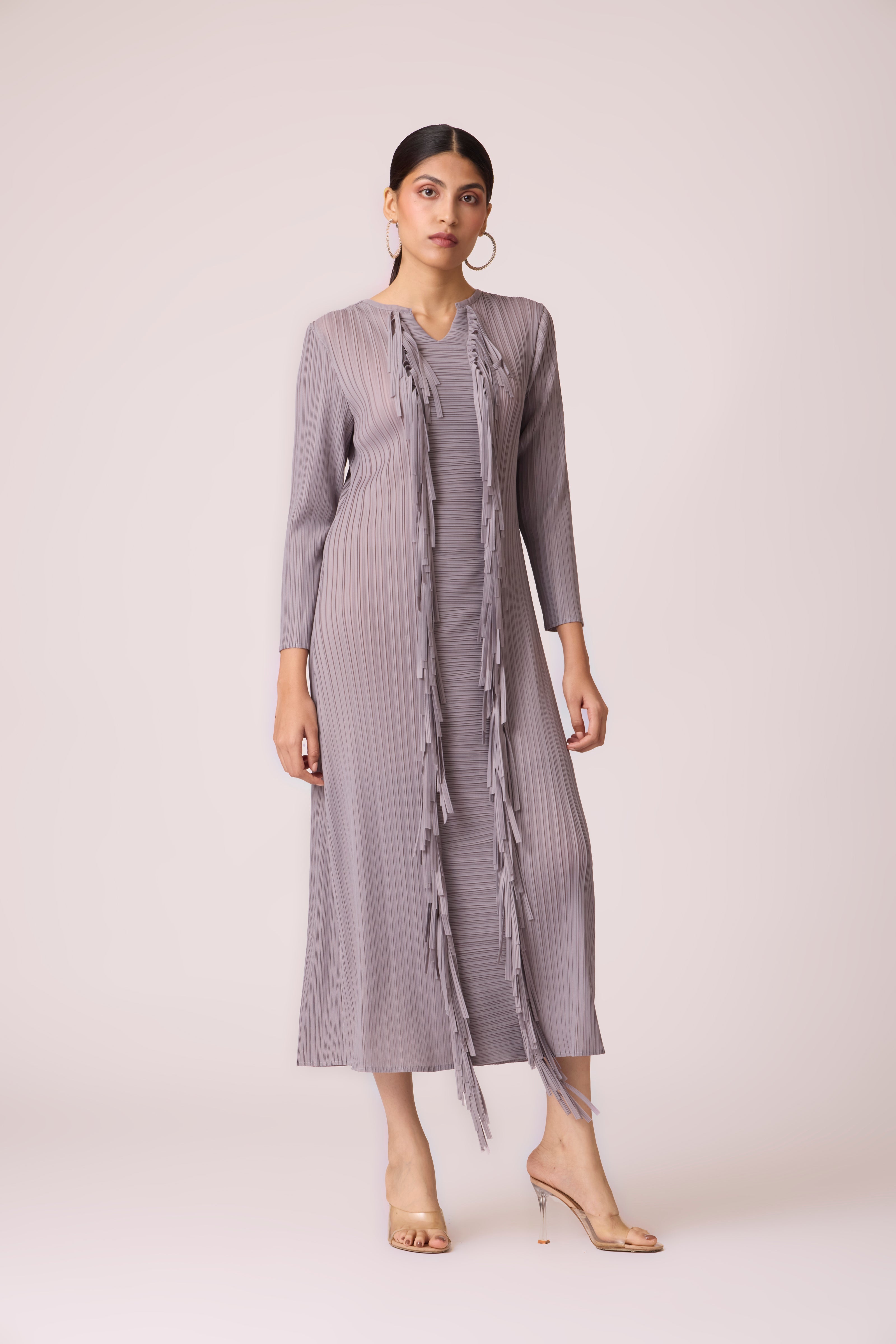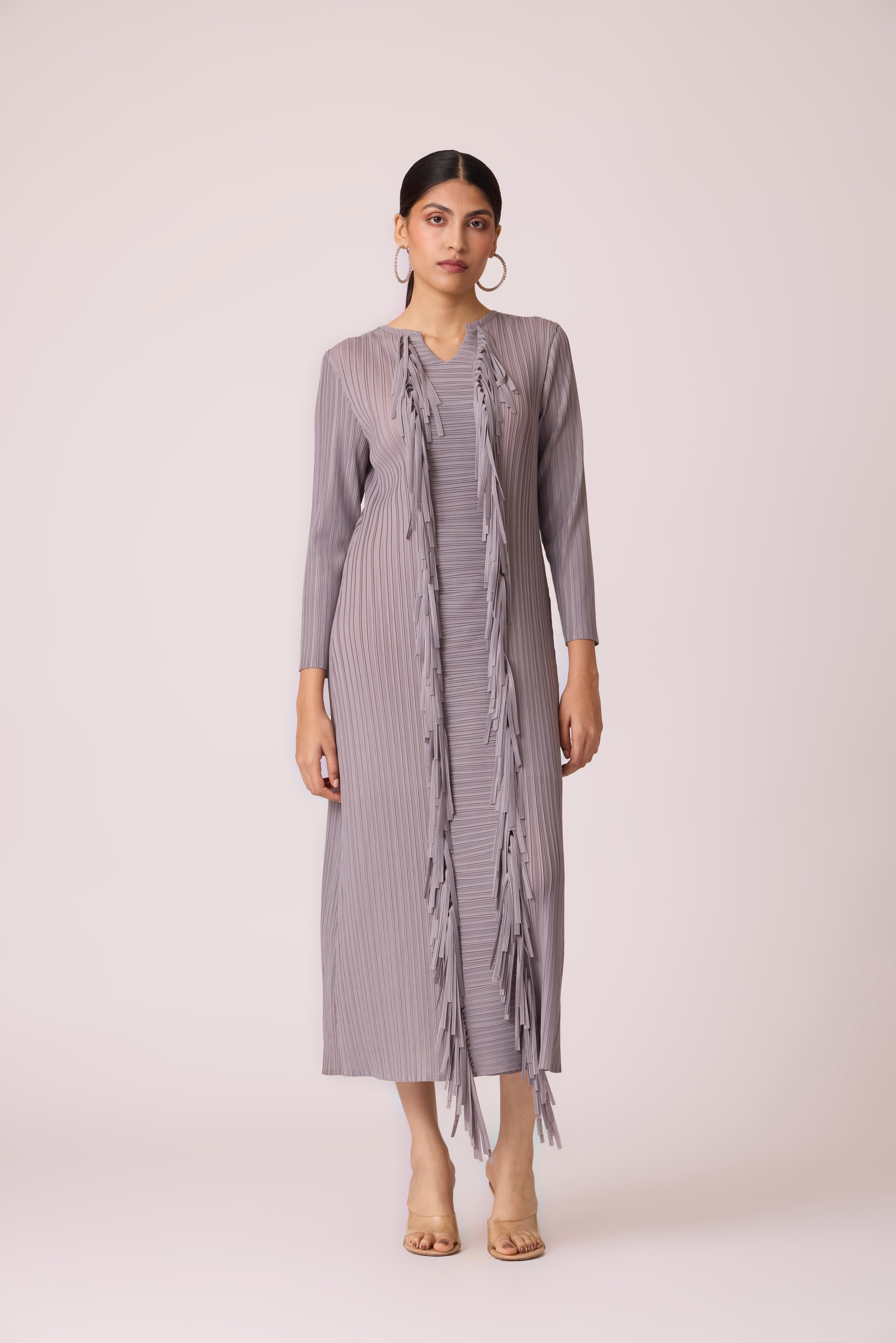 A Long sleeve fringe detail dress for relaxed formal evenings.