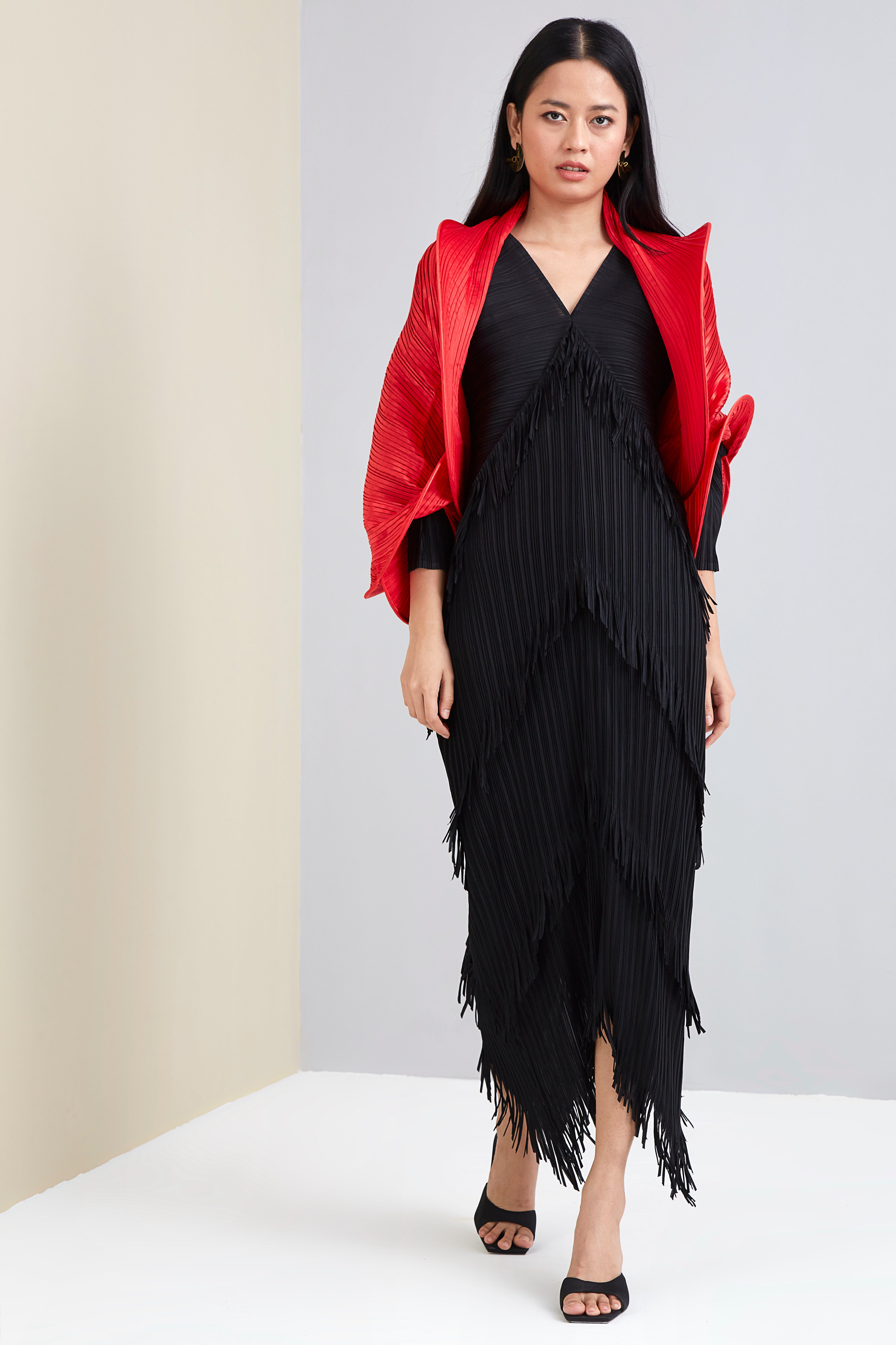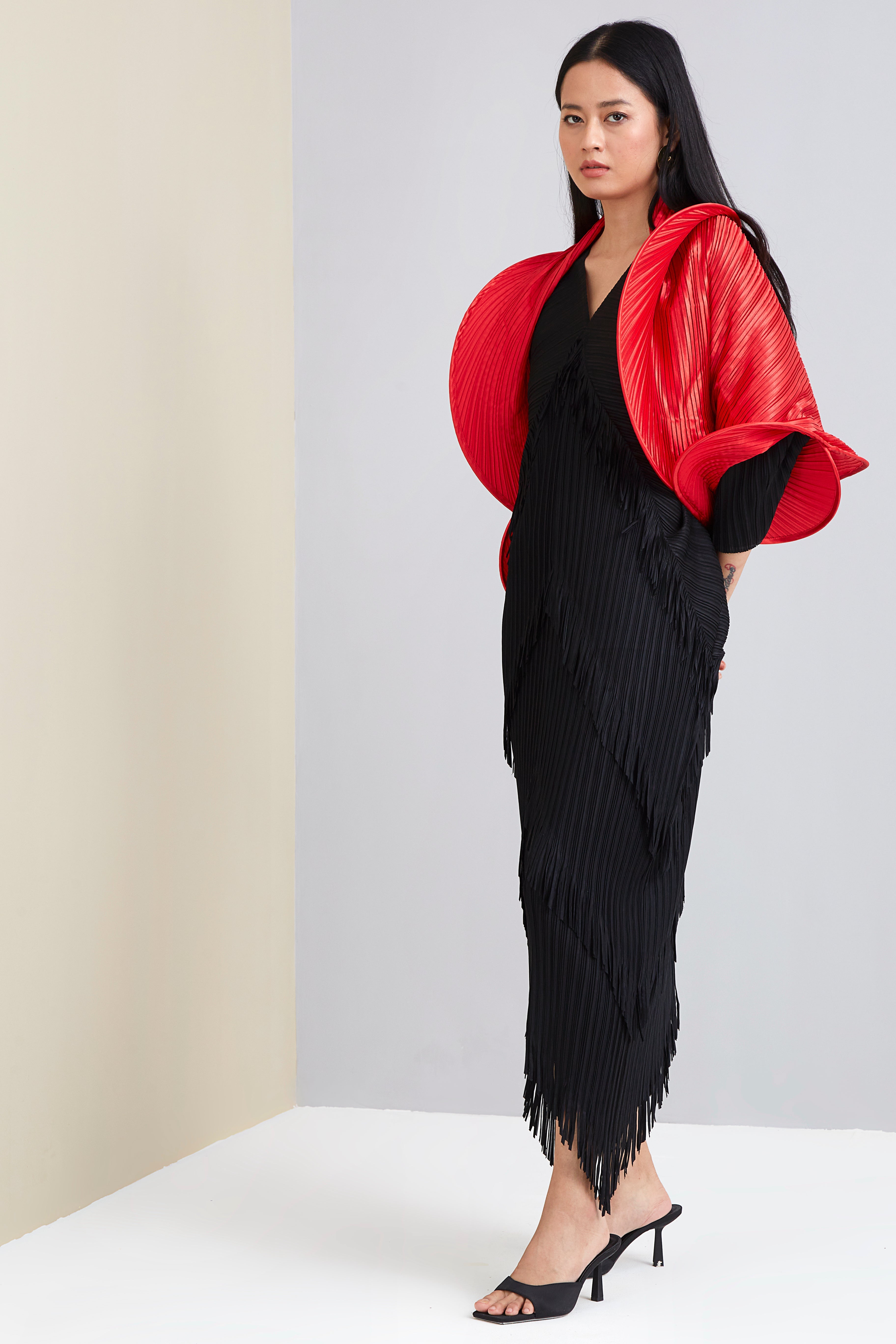A gorgeous structured yet fluid, pleated satin wrap. Wear it draped any way you choose - This wrap can be worn as many ways as your mind will allow !